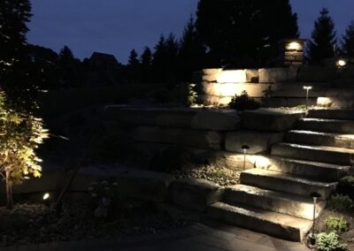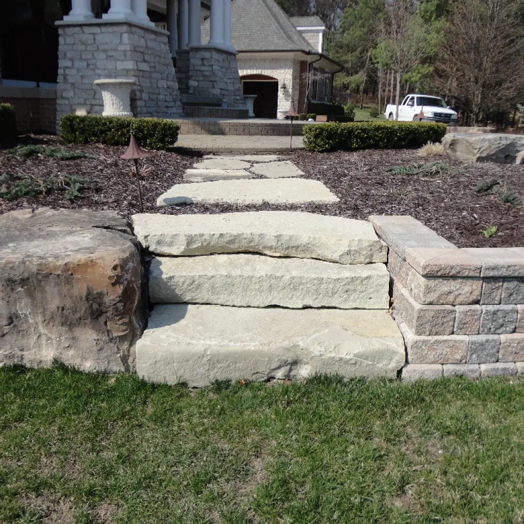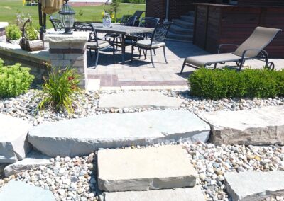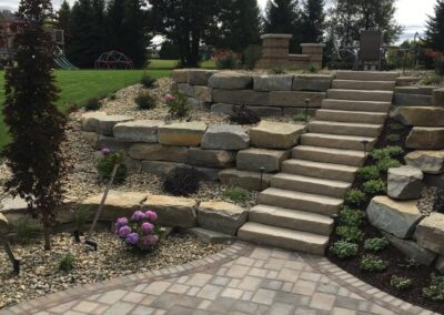 Paver patios and walkways define movement and flow, offering flexibility, easy maintenance, and lasting charm. Retaining walls and steps add structure, prevent erosion, and bring dimension to your landscape — blending strength with natural beauty for a timeless outdoor retreat.